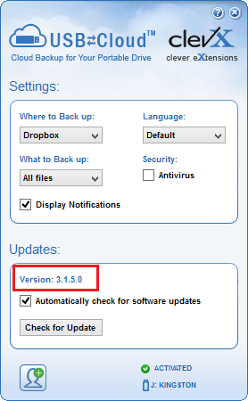 Open the Settings dialog. The version number is displayed under the “Updates” section.